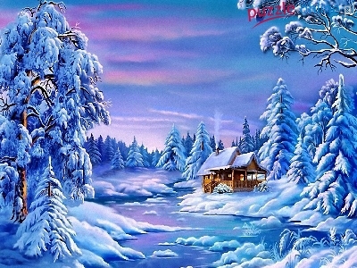 Las, Rzeczka, Zima, Domek, Åšnieg