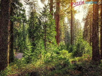 Park Narodowy Kings Canyon, Droga, Stany Zjednoczone, Stan Kalifornia, Las