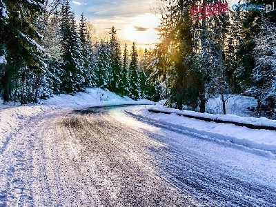 Las, Słońca, Zima, Droga, Zachód
