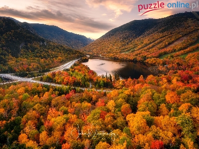 Droga, Jesień, Stan New Hampshire, Stany Zjednoczone, Las, Jezioro, Echo Lake, Drzewa, White Mountains, Góry