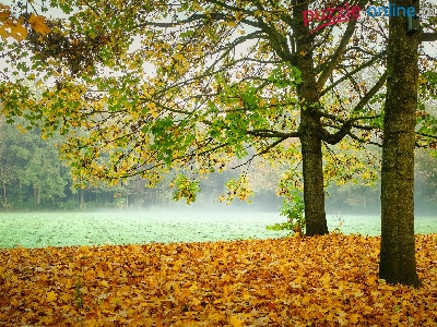 Mgła, Pole, Jesień, Las, Liście, Drzewa