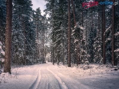 Podlasie, Las, Droga, Zima, Polska, Puszcza Knyszyńska, Drzewa