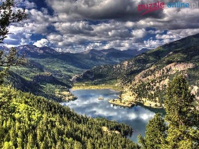 Puzzle Las, Chmury, Góry, Jezioro