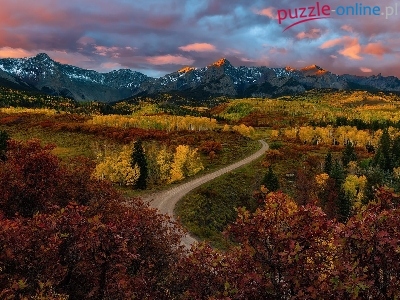 Las, Droga, Jesień, Góry, Kręta