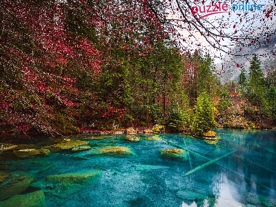 Kanton Berno, Jesień, Drzewa, Kamienie, Szwajcaria, Jezioro Blausee, Las