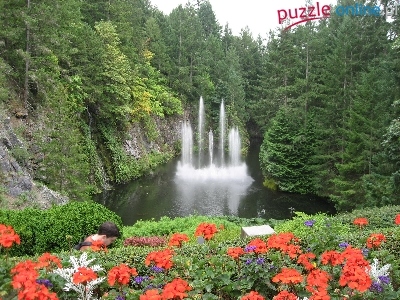 Puzzle Las, Fontanna, Jeziorko, Kwiaty