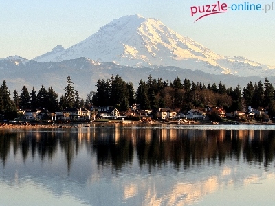 Puzzle Las, Góry, Jezioro, Domy