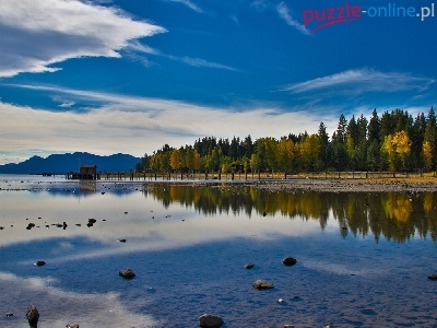 Puzzle Las, Płytkie, Jezioro, Chmury