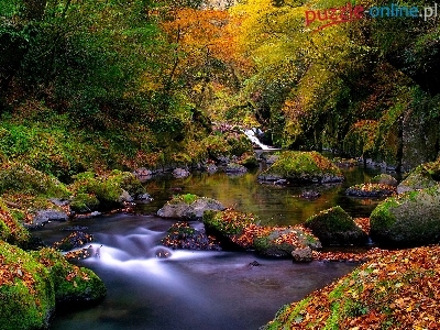 Puzzle Las, Rzeka, Kamienie, Jesień