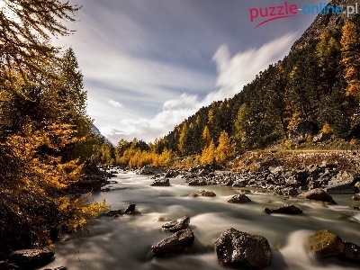 Puzzle Las, Rzeka, Kamienie, Jesień