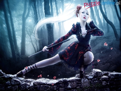 Puzzle Las, Miecz, Kobieta