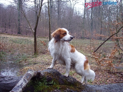 Puzzle las, Płochacz holenderski, Kooikerhondje, woda