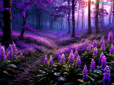 Fioletowe, Las, Kwiaty, Grafika, Drzewa