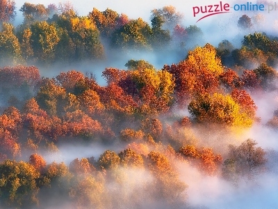 Puzzle Las, Jesień, Mgła, Drzewa