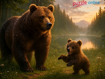 Niedźwiedź, Las, Niedźwiadek, AI, Jezioro