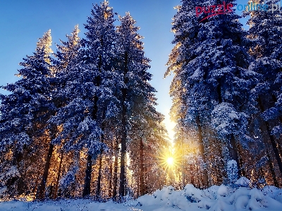Las, Słońca, Zima, Śnieg, Promienie