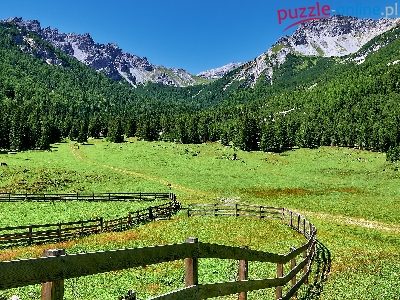 Łąka, Drzewa, Góry, Las, Dolina, Ogrodzenie