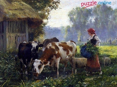 Puzzle Las, Krowy, Owce, Łąka