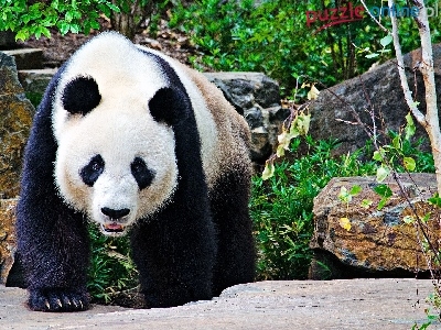 Puzzle Las, Miś, Panda, Skały