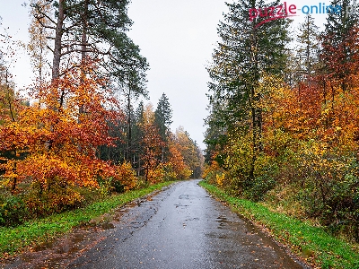 Drzewa, Droga, Jesień, Las, Las, Pożółkłe