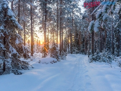 Las, Zima, Drzewa, Promienie słońca