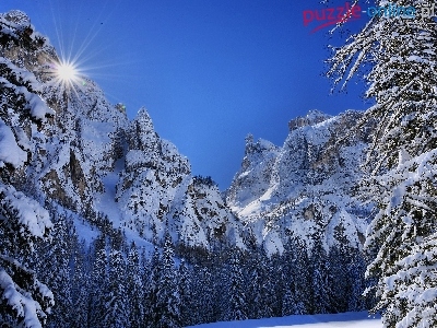 Puzzle Las, Zima, Góry, Promienie Słońca