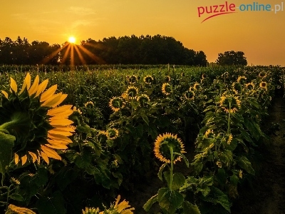 Las, Słońca, Uprawa, Zachód, Promienie, Słoneczniki