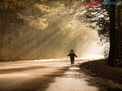 Puzzle Las, Droga, Dziecko, Przebijające Światło