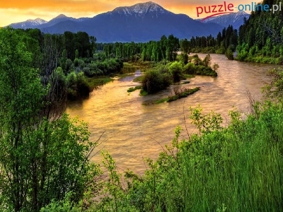 Puzzle Las, Góry, Rzeka, Trawy