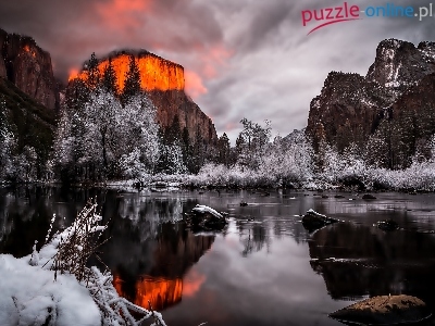 Las, Góry, Kalifornia, Zima, Rzeka, Yosemite