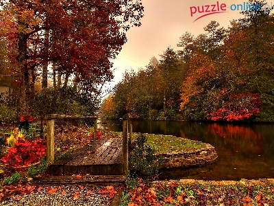 Puzzle Las, Mostek, Rzeka, Jesień