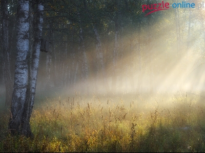 Puzzle Las, Promienie, Słońca, Brzozy