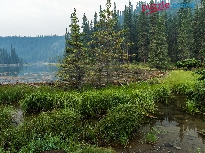 Jezioro Horseshoe, Alaska, Trawy, Stany Zjednoczone, Park Narodowy Denali, Las