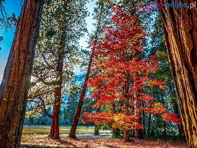 Góry, Stan Kalifornia, Drzewa, Stany Zjednoczone, Park Narodowy Yosemite, Las