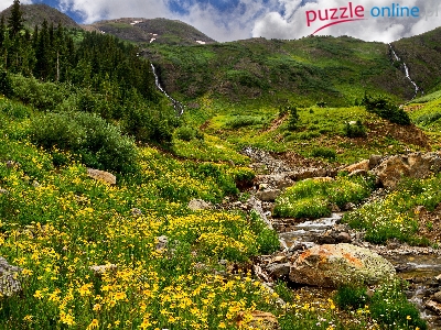 Las, Kwiaty, Wzgórza, Łąka, Strumienie, Kamienie