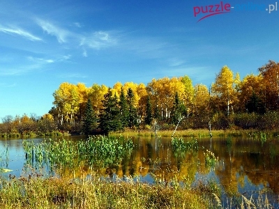 Puzzle Las, Jezioro, Szuwary, Jesień