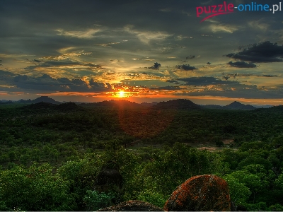 Puzzle Zachód, Las, Słońca