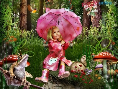 Puzzle Las, Dziewczynka, Zaczarowany, ZwierzÄ…tka