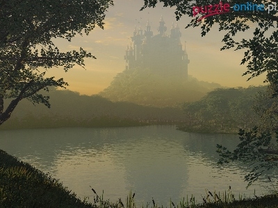 Puzzle Las, Krajobraz, Zamek, Jezioro