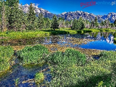 Puzzle Las, Rzeka, Zarośla, Góry