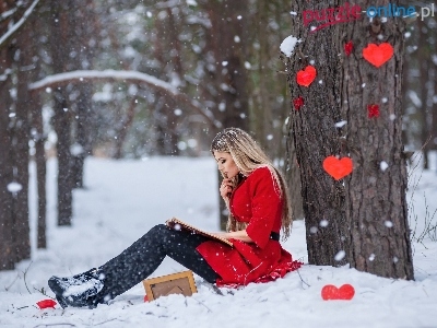 Las, Serca, Blondynka, Zima, Walentynki
