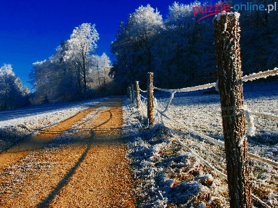 Puzzle Las, Droga, Zima, Ogrodzenie
