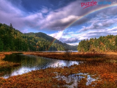 Lasy, Tęcza, Rzeka, Bagna, Chmury