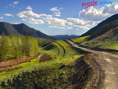 Puzzle Łąki, Droga, Lasy, Góry
