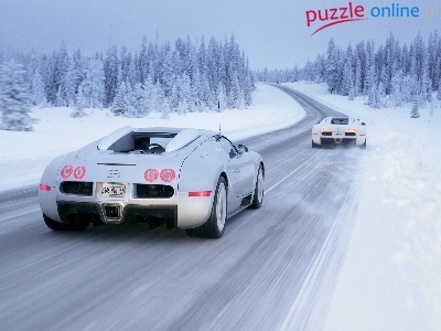 Puzzle Lasy, Bugatti, Droga, Zima