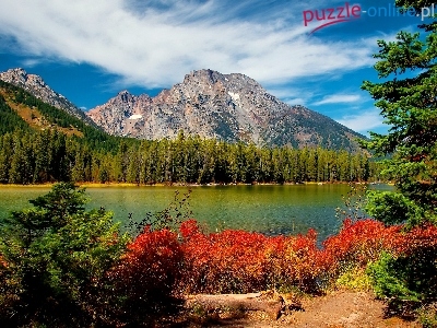Puzzle Lasy, Jezioro, Góry, Jesień