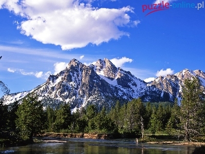Puzzle Lasy, Rzeka, Góry, Chmury