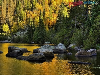 Lasy, Jesień, Rzeka, Góry, Kamienie