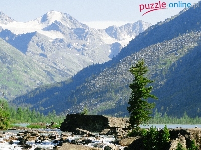 Puzzle Lasy, Rzeka, Góry, Kamienie