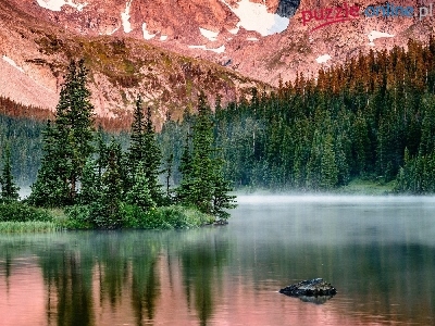 Puzzle Lasy, Rzeka, Góry, Mgła